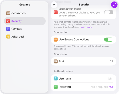 When utilizing Screens to connect to a Mac, accurate authentication credentials are essential for establishing one-off connections or creating a saved screen in the Screens Library.