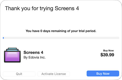 - "평가판 종료" 시트가 나타나면 Return 키를 누릅니다.